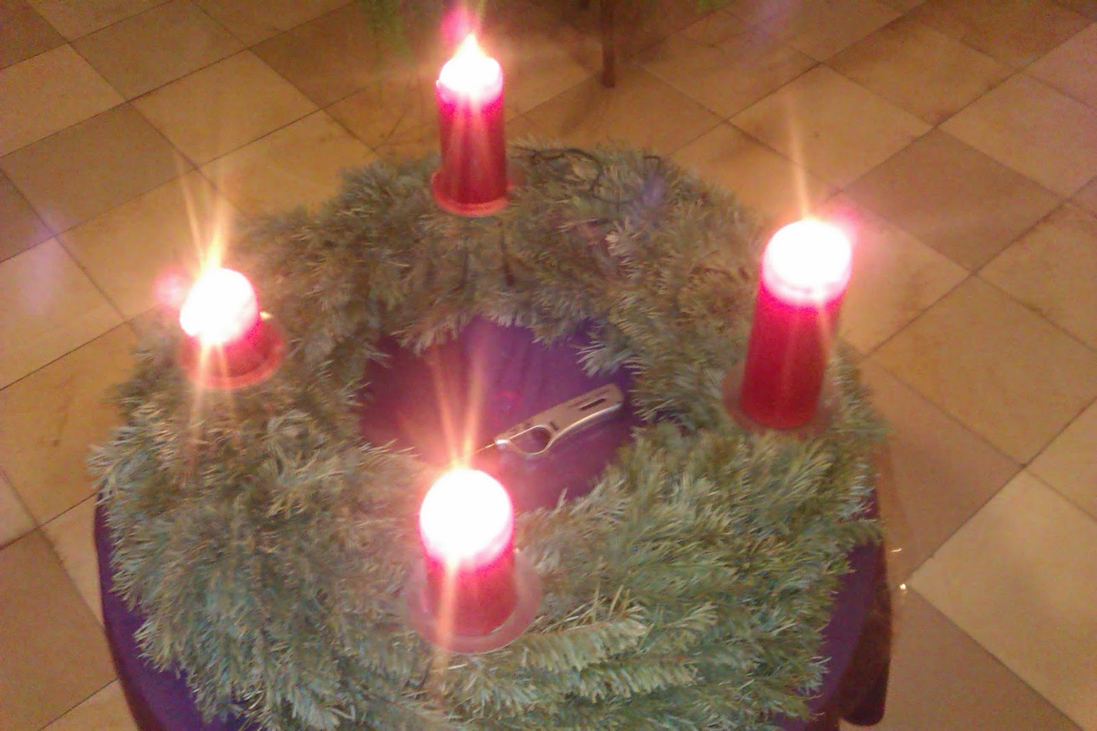 Ja, dat klopt. Een paar dagen geleden kwam de stal in de kapel. Nog leeg! De boom staat er ook al, en onder de boom weiden de schaapjes, en de schaapherder staat erbij met zijn fluit en speelt.En vier kaarsen branden op de Adventskrans.